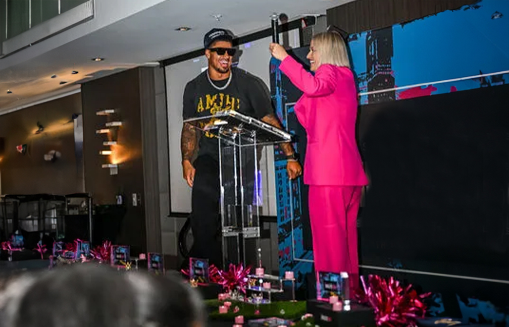 Pink Turf Suits and Sneakers awards night
